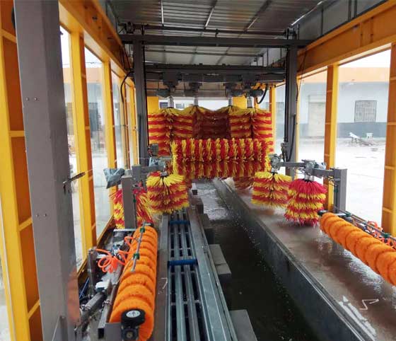 金龍隧道式洗車機,根據消費者的要求的不同,隧道式全自動洗車機共開發出了5支刷、7支刷、9支刷、11支刷、12支刷、14支刷6個型號,本產品采用了最實用化的設計理念:輸送機更矮、更寬,可適應最新型車輛要求,輸送機的人性化設計,不會有積水和淤泥,便于清理,入口有車輪導正器,方便車輛駛入;整機采用防腐框架加封玻璃,高端、大氣、上檔次,產品廣告效應極佳